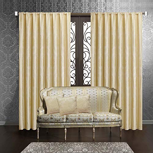 IR Luxury Jacquard Pair of Damask Pencil Pleat Fully Lined ~ IR Luxury Jacquard Pair of Damask Pencil Pleat Fully Lined Floral Curtains for windows bedrooms’ kids Room living rooms Doors Home Decor with tie backs Betty Cream Pencil Pleat Curtains 90 X 90
